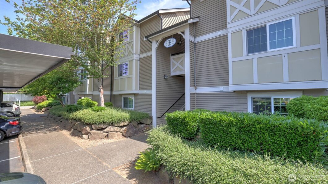 Welcome to this top-floor, corner-unit in the desirable & gated Connections community! You will love its bright & open layout w/vaulted ceilings & abundance of natural light. The spacious living room features a cozy fireplace & access to a private balcony—perfect for relaxing or entertaining. The updated kitchen boasts granite counters, SS appliances, ample cabinet space, and bar seating open to the dining rm. The generously sized bedroom offers a peaceful retreat w/a W/I closet & a remodeled full bath. Enjoy the convenience of in-unit laundry, covered parking & extra balcony storage. Located just minutes from Kent Station, Lake Meridian Park, shopping, dining, parks, schools & commuter routes, this condo blends comfort and convenience.