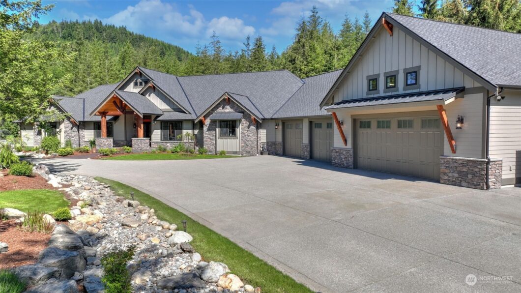 Discover luxury living in the gated Estates at Sugarloaf. The exquisite craftsmanship of this VB Homes resale is truly an oasis. Enter to a great room w/vaulted ceilings, exposed beams, stone fireplace & live edge shelving. Chef’s kitchen w/large island, theatre w/wet bar, W/I vault, hairdresser station, smart home features, whole-home generator, outdoor covered patio w/dream kitchen, serene landscape, raised garden beds w/shed & more! Sprawling rambler w/a 2590 sqft garage that parks up to 4 cars + a 45′ RV bay & a walk-up finished attic. On 3 acres set amidst the natural beauty of Ravensdale, this exclusive home provides a perfect blend of privacy & comfort. Enjoy the award-winning Tahoma Schools & just minutes to local shops & dining.