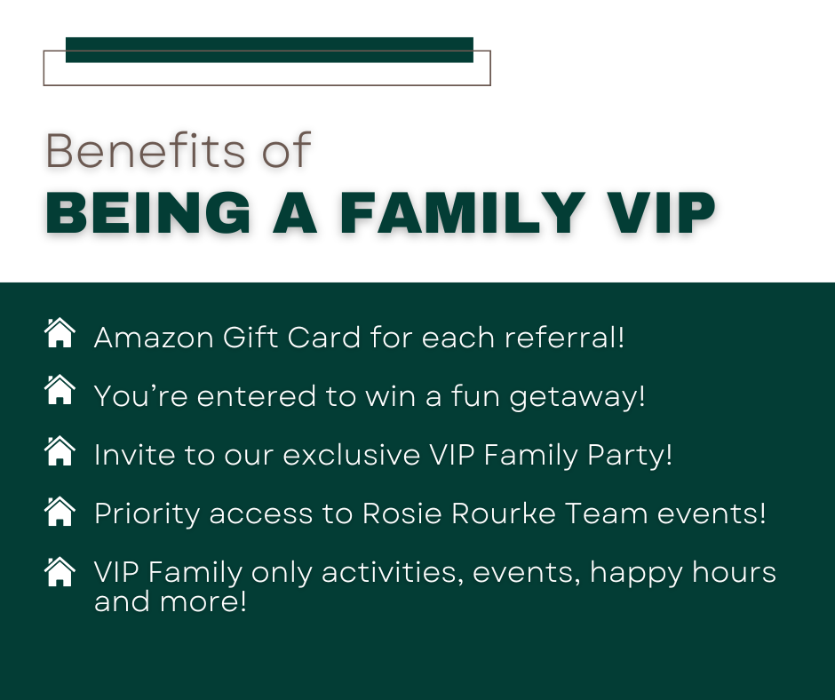 Joining — and staying — in the VIP Family is simple: just refer two clients to the Rosie Rourke Team each year.